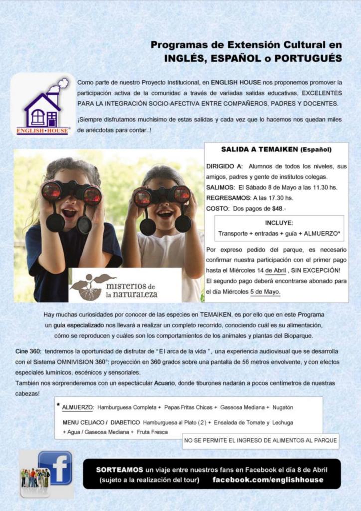 Como parte de nuestro Proyecto Institucional, en ENGLISH HOUSE@ nos proponemos promover la participación activa de la comunidad a través de variados programas de extensión cultural.